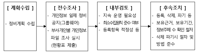 - 개인정보내부관리계획에 연1회 이상 일제정비 내용을 포함시켜, 당위성 확보